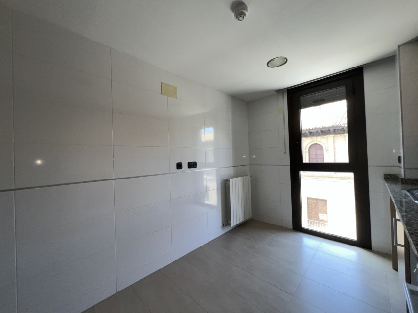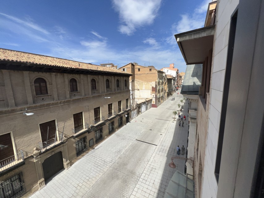 Vivienda en edificio del año 2008 . Tiene una superficie útil de 97 m²; 3 dormitorios, salón y cocina orientados al Coso y dos baños completos con bañera. Suelos de tarima de roble en toda la vivienda excepto en baños y cocina que hay gres. Puertas de roble. Carpintería exterior de aluminio con climalit. Calefacción individual y aire acondicionado. Domótica.