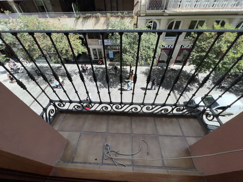Vivienda de una superficie de 135 m² útiles. Esta distribuida en un gran salón orientado al Coso, amplia cocina bien equipada con encimera de granito y salida a una galería con zona de lavado, dos habitaciones y otra de despacho o desahogo y tres baños. La habitación principal, también orientada al Coso tiene un armario-vestidos y un baño tipo suite. Armario empotrado en la entrada. Calefacción individual. Aire acondicionado por conductos y sectores. Techos altos.