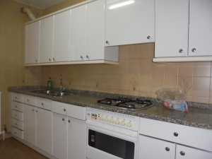 Zona Pirineos . Vivienda de 4 dormitorios, salón, cocina muy amplia, un baño con bañera y un aseo con ducha. Suelos de parque en el salón y el resto de terrazo. Galería en cocina. Terraza acristatalada con vistas a la sierra. Buena altura y muy luminoso. Calefacción central. Necesita reforma pero con muchas posibilidades.