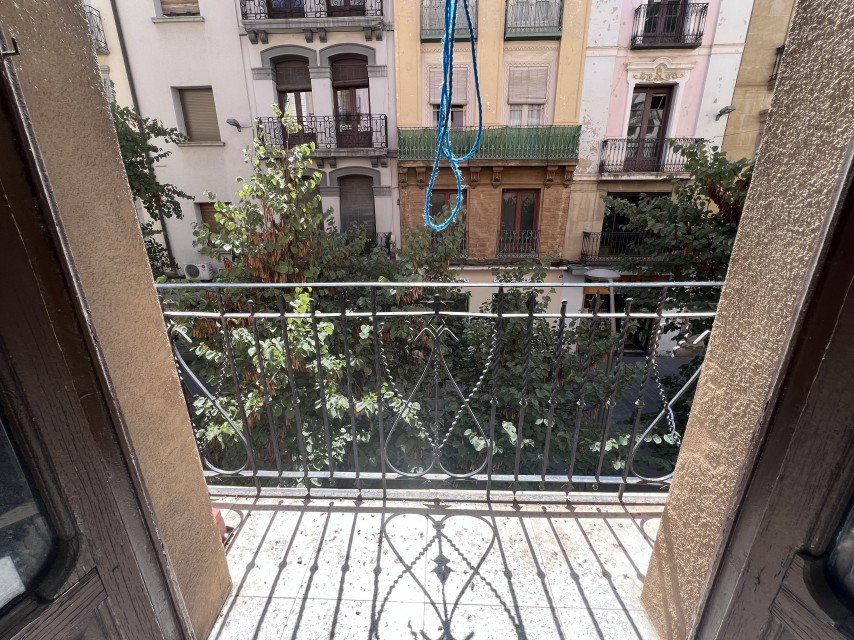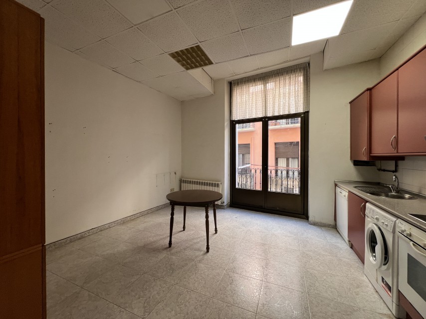 Vivienda de una superficie de 90 m² aproximadamente distribuido en 2 habitaciones amplias, salón, con balcón orientado al mismo Coso, cocina muy amplia y un baño con plato de ducha. Tres balcones al Coso. Chimenea en una habitación. Techos altos y muy luminosa ya que da a dos calles. Calefacción individual. Primera planta sin ascensor.