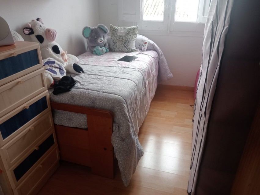 Vivienda de 76 m² distribuida en 4 dormitorios, salón, cocina con galería y baño con ducha.