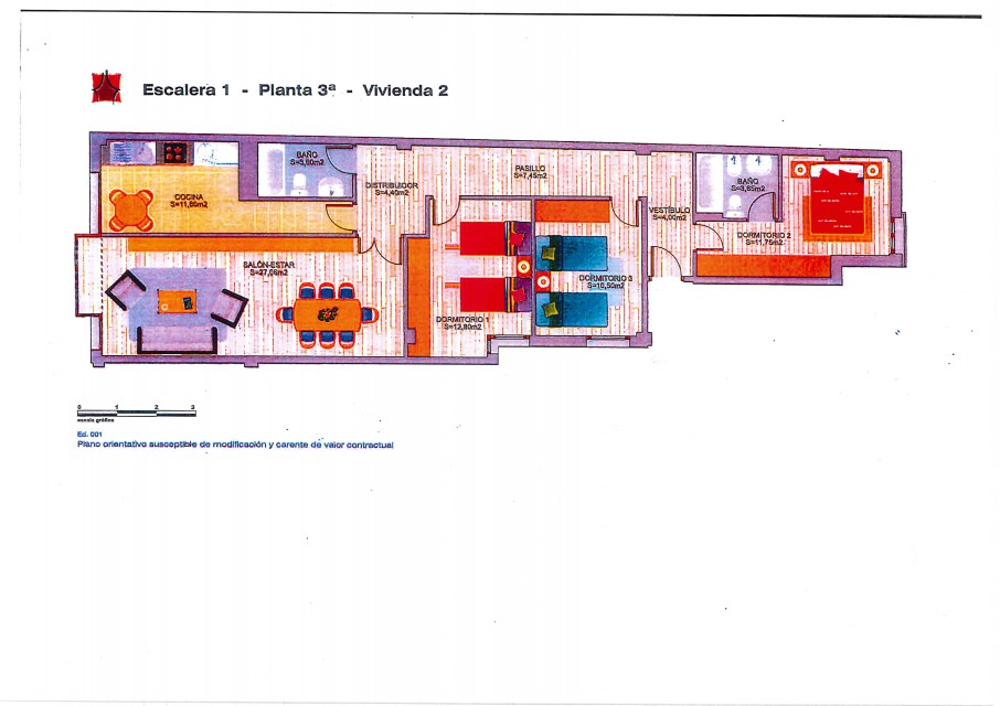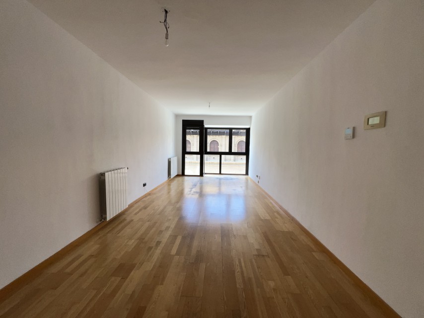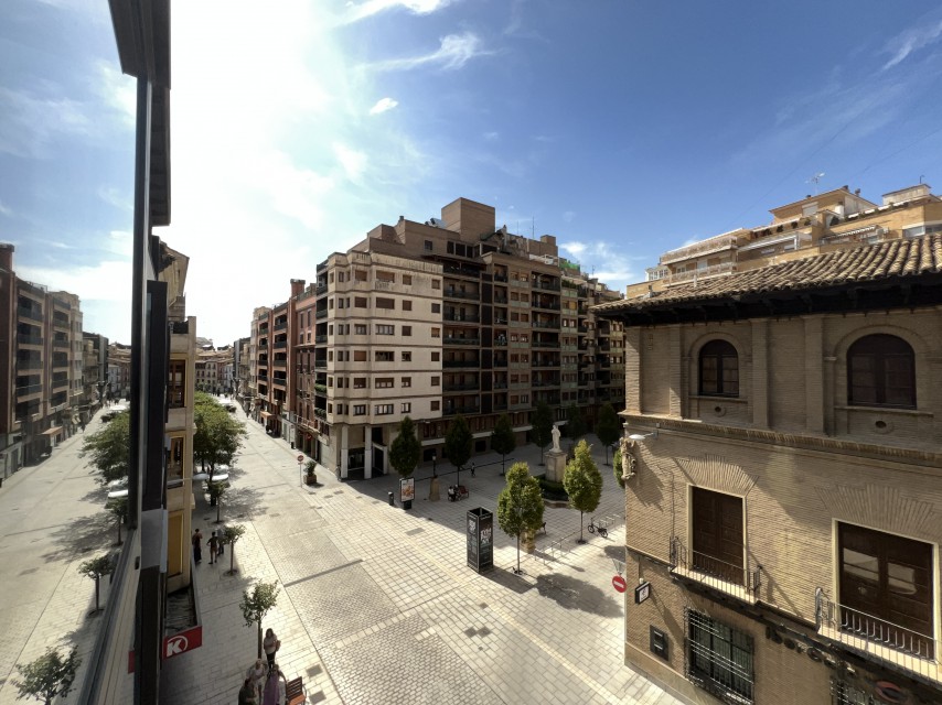 Vivienda en edificio del año 2008 . Tiene una superficie útil de 97 m²; 3 dormitorios, salón y cocina orientados al Coso y dos baños completos con bañera. Suelos de tarima de roble en toda la vivienda excepto en baños y cocina que hay gres. Puertas de roble. Carpintería exterior de aluminio con climalit. Calefacción individual y aire acondicionado. Domótica.