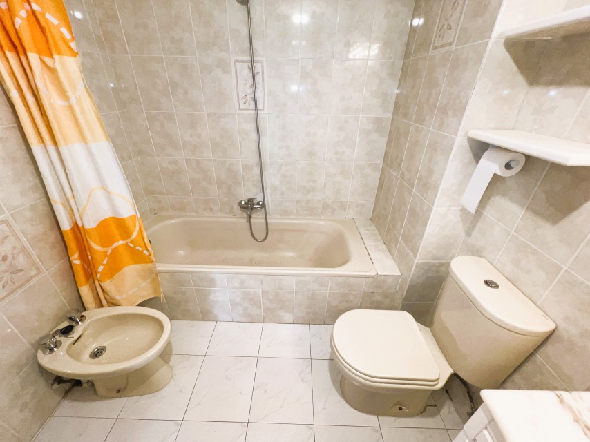 Apartamento distribuido en 2 habitaciones dobles, salón con salida a una terraza, cocina y un baño completo con bañera.