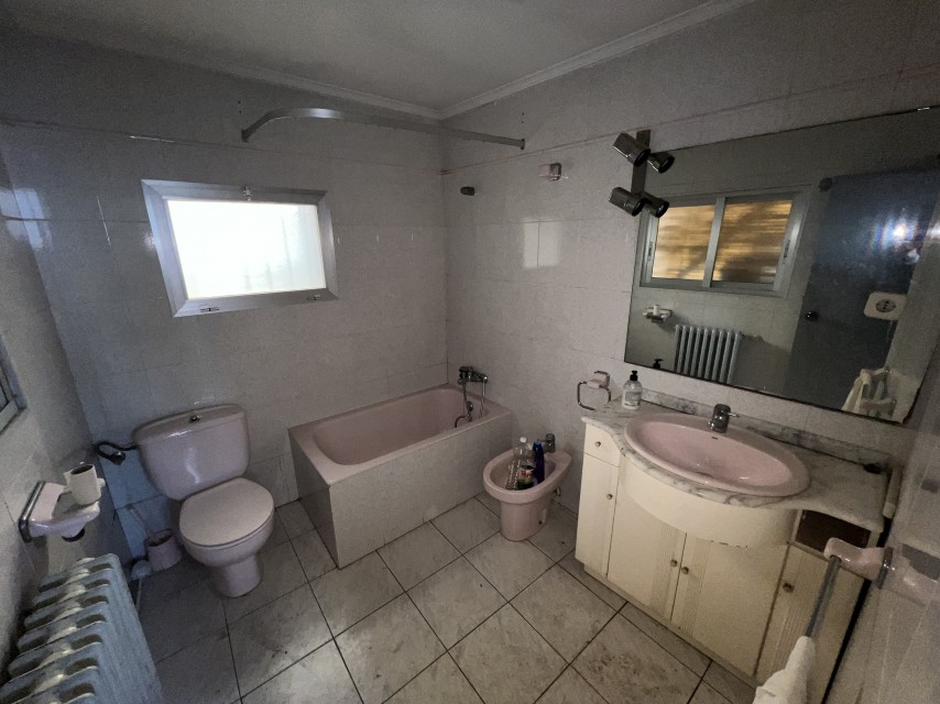 Esta distribuida en 3 plantas. En planta baja, entrada y garaje, en primera planta hay una sala, un dormitorio, 2 alcobas, salón, cocina, 2 baños y un trastero.